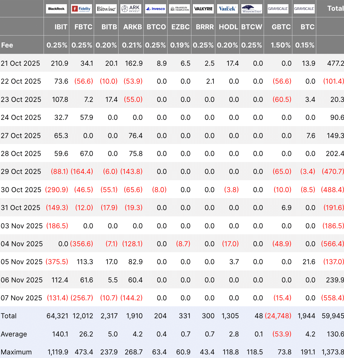 US spot Bitcoin ETFs turned positive again on Thursday, November 7, attracting roughly $240M after six consecutive days of outflows.
