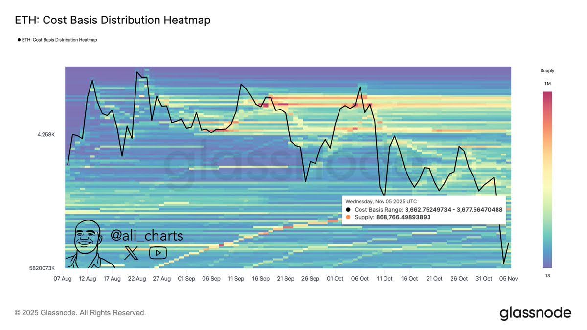 Ethereum is also approaching a significant supply zone near $3,700. About 869,000 ETH were bought around this level, creating a strong resistance cap.