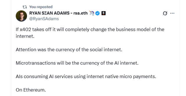 One analyst on X said if x402 takes over, it will fundamentally change the “business model of the internet” that web3 is based on.