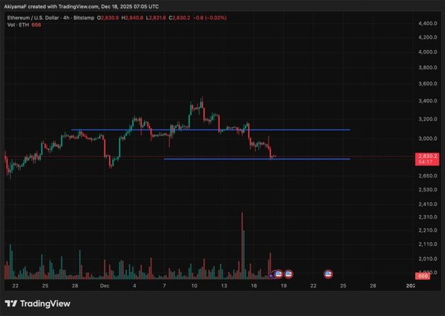Ethereum, on the other hand, dropped by 4% in price last night, briefly touching lows under $2,800 before closing indecisively. Strong bids around $2,800 are still offering short-term support, but resistance between $3,000 and $3,100 remains a big problem.