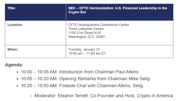 The Securities and Exchange Commission, which looks after stocks and other investments, and the Commodity Futures Trading Commission, which oversees things like gold and oil, said they will host a harmonization event and coordinate future steps on crypto oversight, according to the SEC.